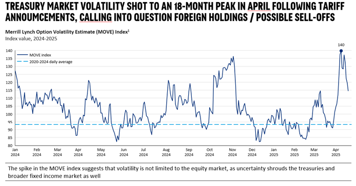 Oliver Wyman analysis, Associated Press, Financial Times, 6th May 2025It remains to be seen (data is still pending on international capital flows and tracking by the U.S. Department of Treasury) whether foreign holders of U.S. Treasuries, such as Japan and China, will utilize their significant holdings as leverage in trade negotiations, particularly in response to tariffs imposed by the Trump administration. This strategic decision could have profound implications for international trade dynamics and financial markets